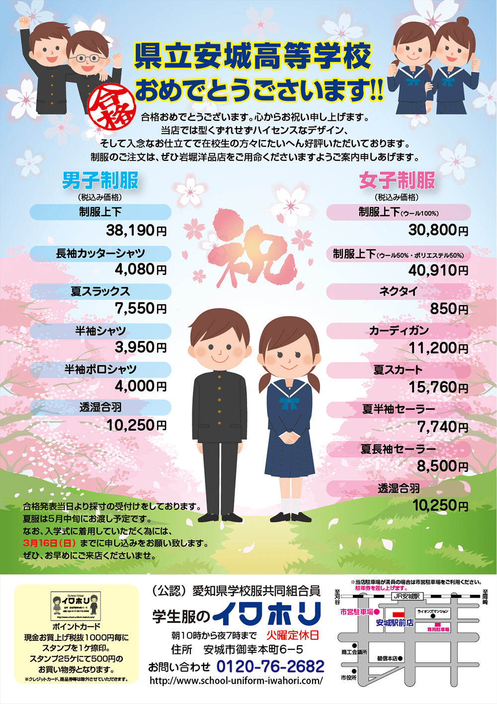 学生服のイワホリは愛知県安城市で学生服を販売しています。