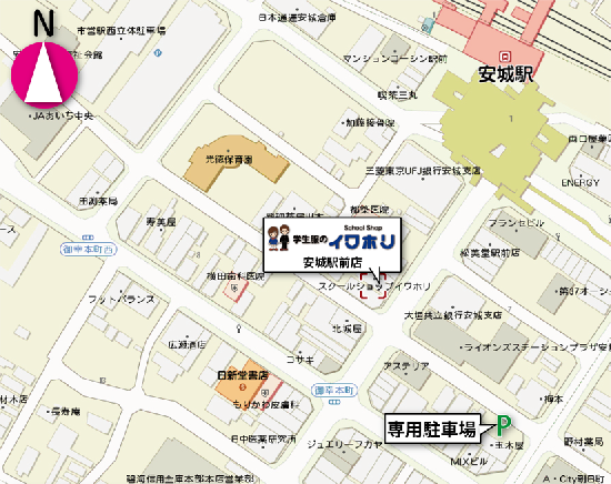 〒446-0032 安城市御幸本町6-5TEL0566-76-2682FAX0566-74-8330拡大縮小出来るGoo地図はコチラから